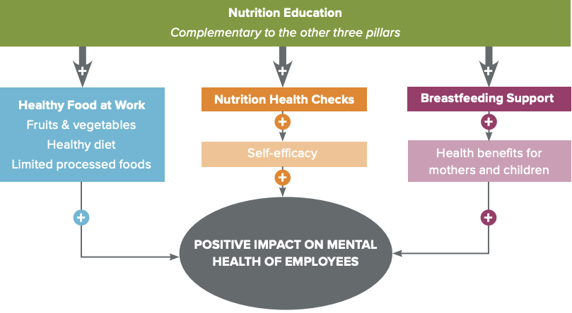 A promising approach for employers has been outlined in the blog about mental health and nutrition, where the association between nutritional and mental health was explained10. Companies and corporate organisations increasingly address physical and mental health as two dimensions of wellbeing, but few address and recognize their correlation11–17. This appears to be a missed opportunity. Comprehensive policies and actions that improve nutritional outcomes through the workplace could also enable employers to improve employees’ mental health and wellbeing and generate a return on investment of 6:110,18.