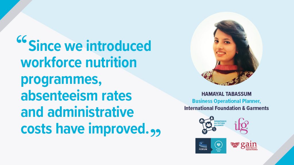 As the Business Operational Planner at International Foundation & Garments (IFG), one of Asia’s leading lingerie manufacturers and Triumph’s first distributor in Asia, I pay particular attention to the well-being of our employees. Their health is an essential part of our corporate culture, which we’re particularly well known for. It was this focus that led us to introduce Workforce Nutrition programmes at our worksites and I subsequently signed up for the Workforce Nutrition Masterclass run by the Workforce Nutrition Alliance.